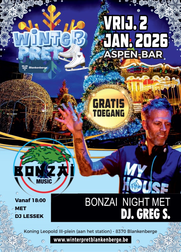 Bonzai Night met dj. Greg S. vrijdag 2 januari 2026 - Van 18.00 tot 23.00 uur